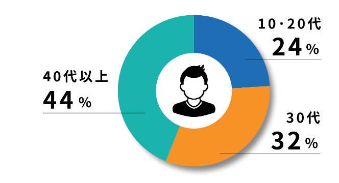 当社は、学歴や知識ではなく、『向上心』を第一に社員を採用しています。その前提で、社員の属性構成は10歳代・20歳代で34%・30歳代が20%と、社員の半分以上が30歳代以下で構成されている、意欲的な若手が多く在籍している環境です。(2025年1月現在)